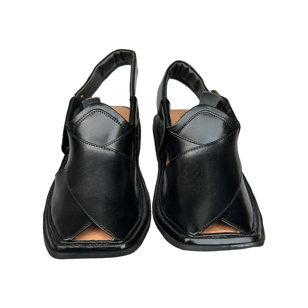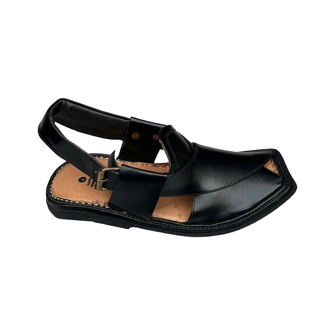 The deep black color enhances the versatility of this Peshawari chappal, making it suitable for a wide range of outfits. Black is a timeless shade that matches both traditional attire like shalwar kameez and modern semi-formal wear. The sleek leather finish exudes sophistication while remaining understated, a hallmark of authentic Peshawari craftsmanship.